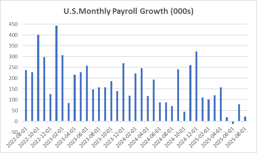 This leads us to the labor market, which saw substantial downward revisions to the number of new jobs created. The U.S. Bureau of Labor Statistics (BLS) revised job creation downward by 911,000 positions for the April 2024–March 2025 period—the largest annual adjustment on record. Macroeconomic uncertainty has certainly affected companies’ decisions around hiring and capital deployment, with the unemployment rate rising to 4.3%, the highest since 2021. This is quite evident in payroll growth, which slowed to an average of just under 27,000 jobs added over the past four months, while the four months before April averaged almost 113,000.